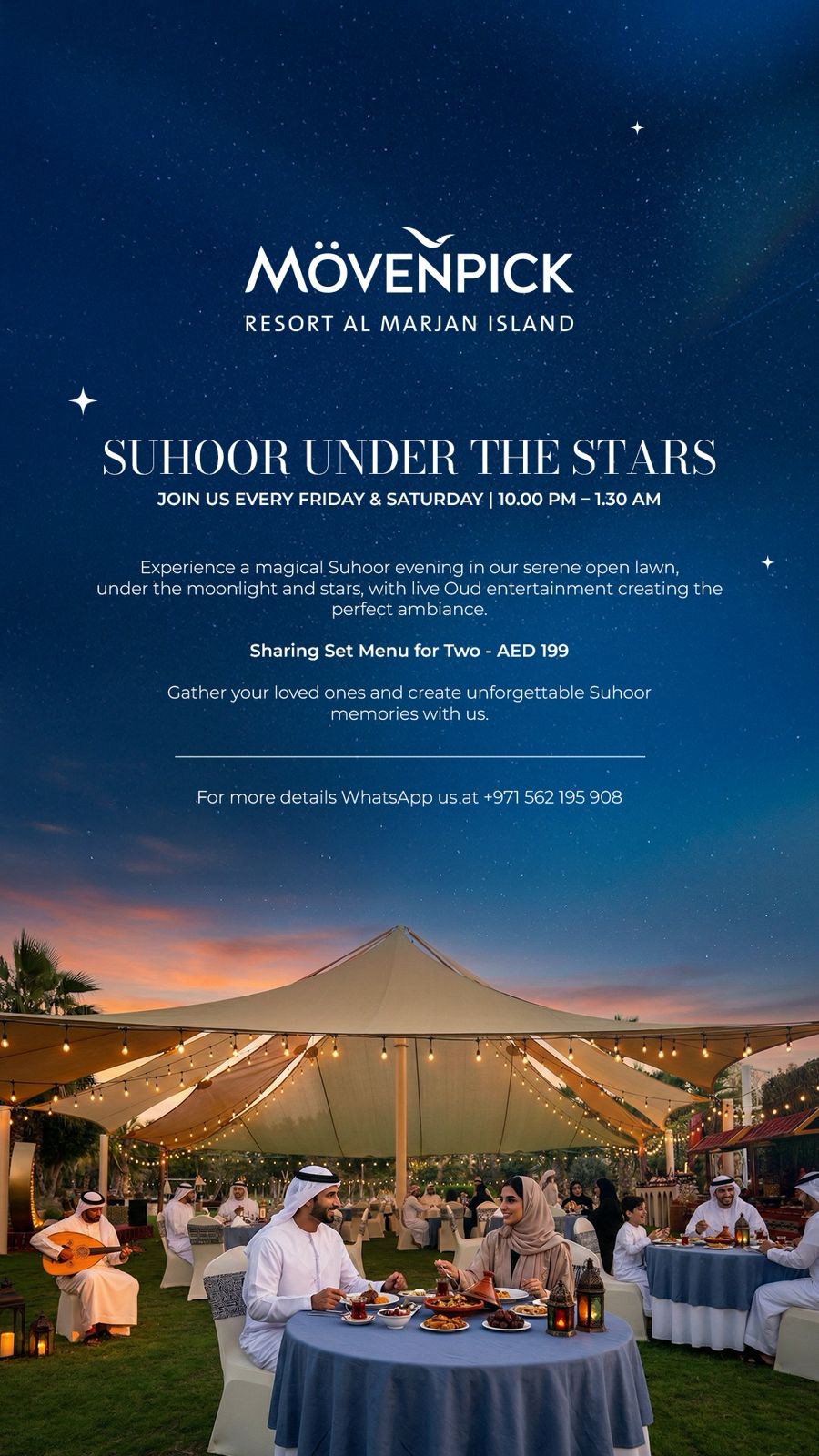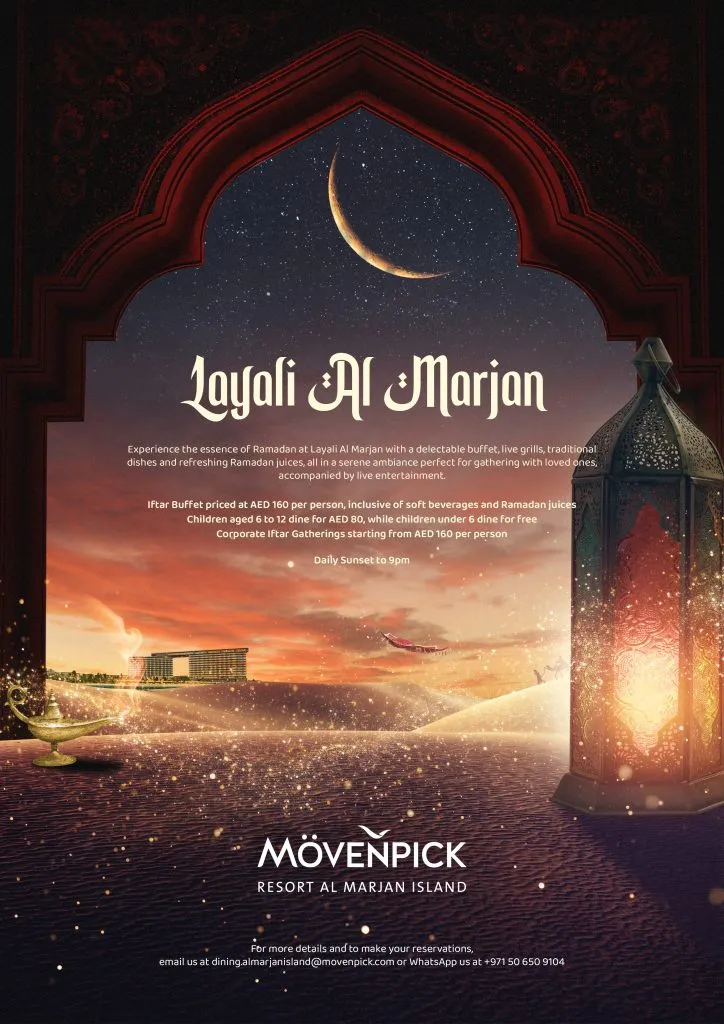 So, what are you waiting for? Whether it’s a decadent Iftar, a peaceful Suhoor, or a chance to give back, Movenpick Resort Al Marjan Island is the place to be this Ramadan. Reserve your spot, grab those discounted vouchers, and get ready for a celebration filled with flavor, tradition, and unforgettable moments!