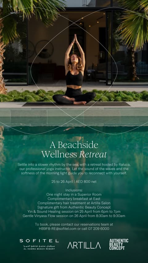 Sofitel Al Hamra Beach Resort invites guests to slow down, breathe deeply, and reconnect with the rhythms of nature during an exclusive two-day Beachside Wellness Retreat. Hosted by Raluca, the resort’s professional yoga instructor, this serene coastal experience is designed to restore balance and nurture the mind, body, and soul.