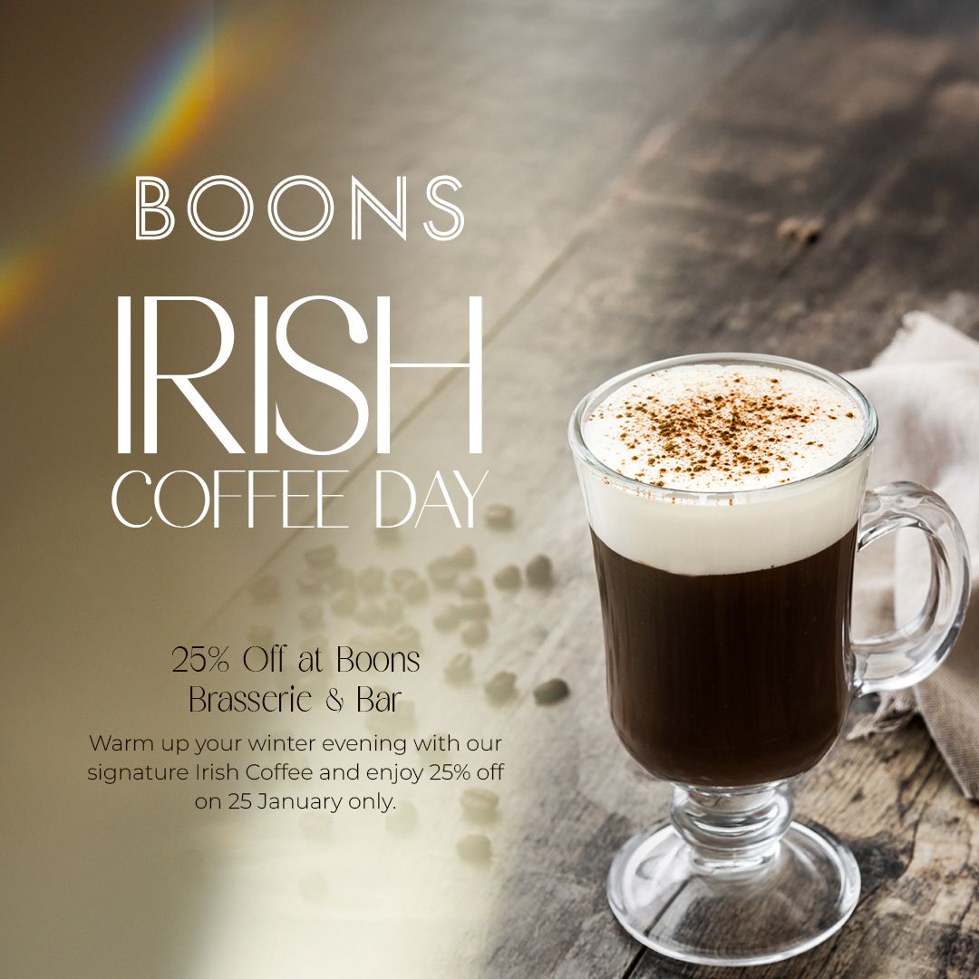☕✨ Warm Up Winter at Boon’s with 25% OFF Signature Irish Coffee ✨☕This 25th January, winter nights get a little warmer
