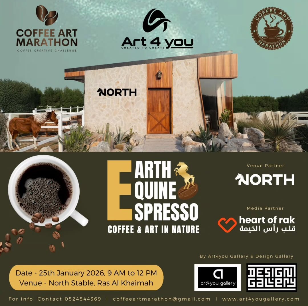 Art, coffee, and nature come together in a refreshing morning experience as Earth Quine Spresso invites art lovers, creatives, and coffee enthusiasts to gather for a soulful open-air event in Ras Al Khaimah. Curated by Art4You Gallery & Design Gallery, this unique coffee-and-art morning is designed to celebrate creativity in harmony with nature, offering a relaxed and inspiring atmosphere away from the city’s rush 🌄🎨.