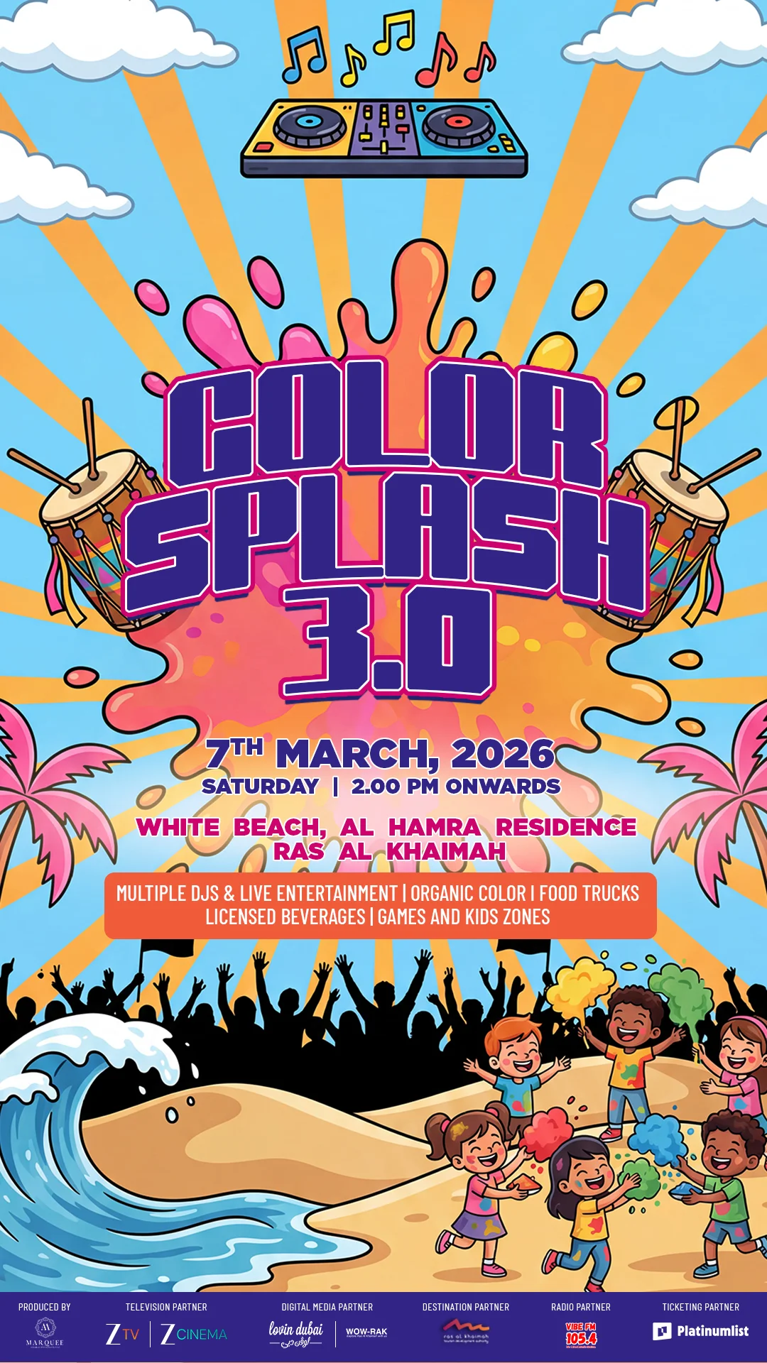 Okay Ras Al Khaimah… this is BIG. This Holi week, Color Splash 3.0 takes over White Beach – Al Hamra Residence for the emirate’s only authorized Holi celebration happening during the actual festival week — fully approved and licensed, with Ras Al Khaimah Tourism Development Authority as the official Destination Partner. ✔️✨