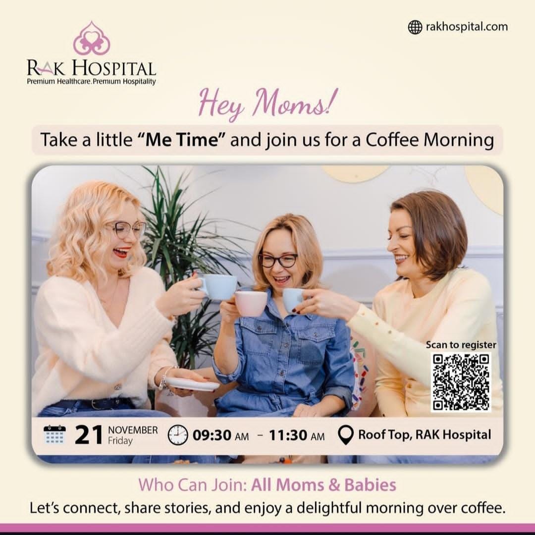 RAK Hospital warmly invites all moms and their little ones to a relaxing and rejuvenating Coffee Morning — a perfect chance to unwind, connect, and share beautiful moments together. 🌸