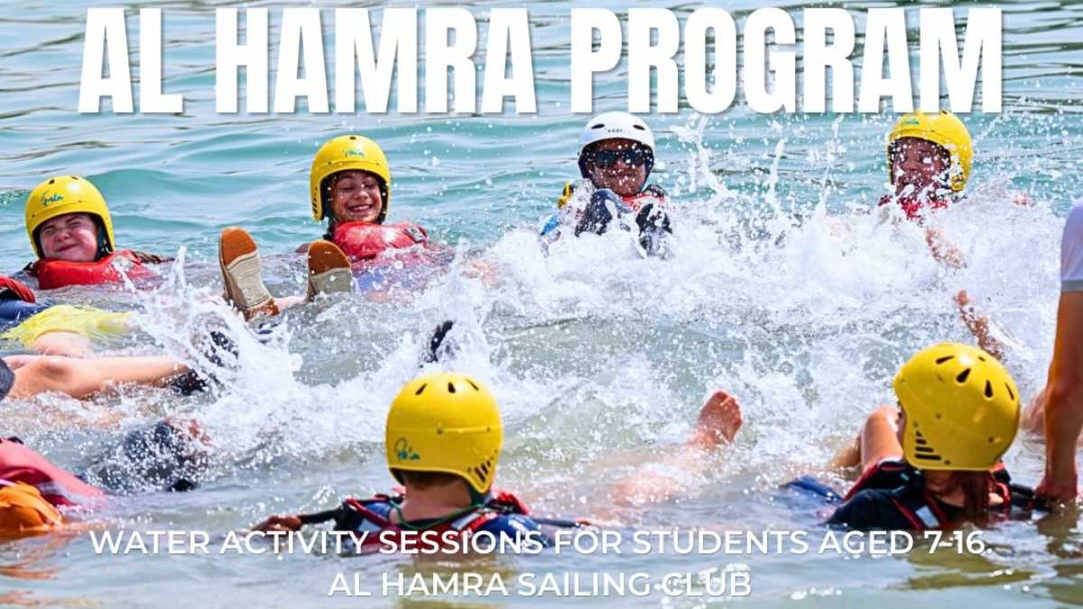 Al Hamra Sailing Club invites young adventurers to dive into an exciting series of water-based activities designed to build confidence, skills, and unforgettable memories. Running from 2 PM – 5 PM, this programme offers a safe, supervised environment where students can learn, play, and thrive on the water. 🌊✨