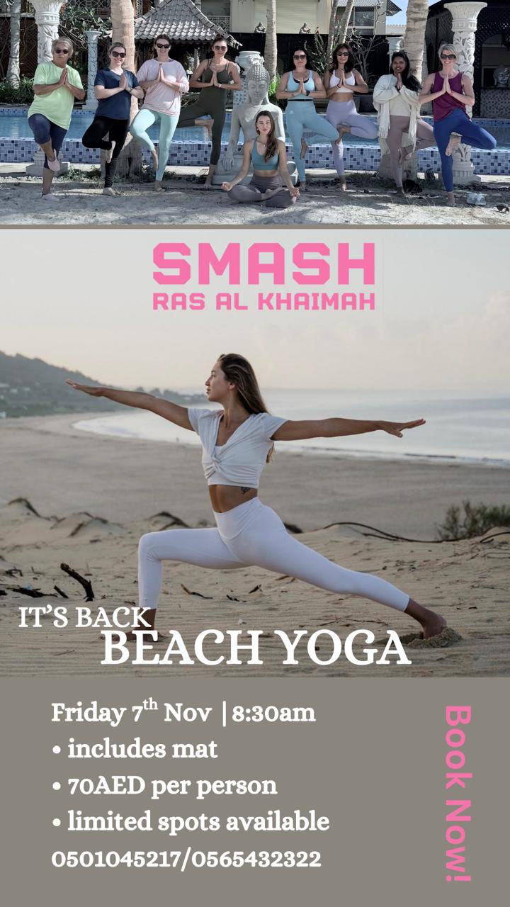 2025fri07nov8:30 amSMASH Beach Yoga8:30 am(GMT+00:00) Smash Ras Al KhaimahEvent Type Leisure