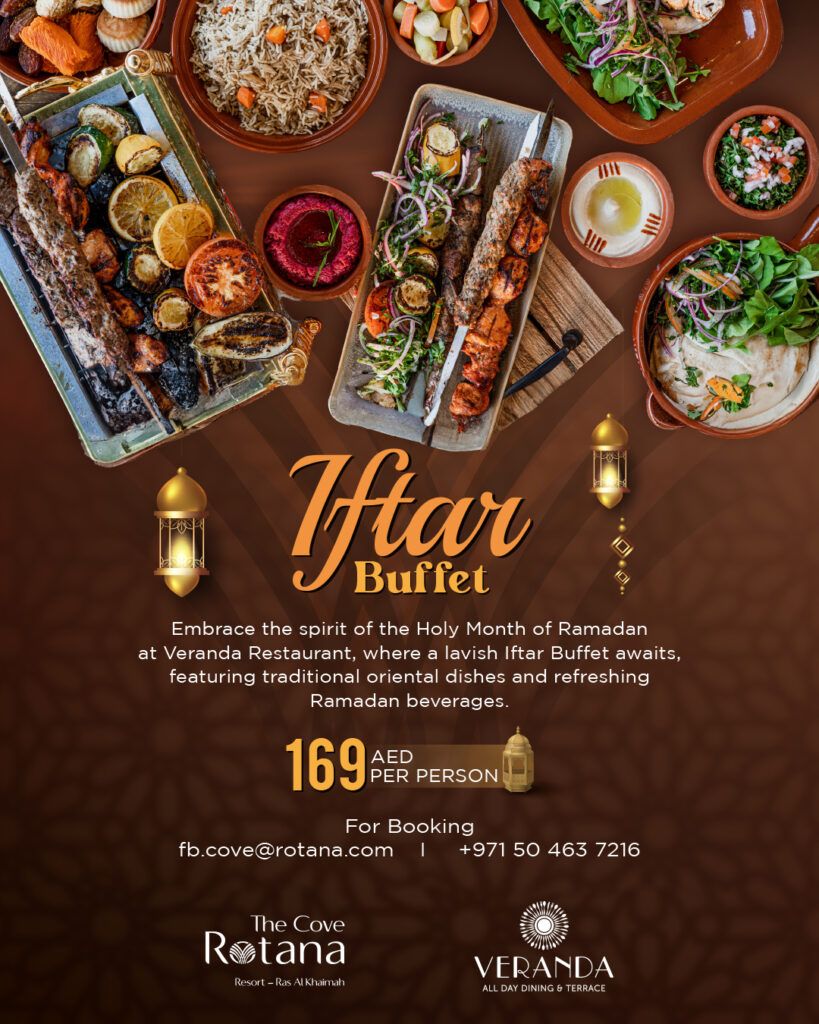 Here’s the rundown: the Iftar buffet at Veranda Restaurant is available daily from Iftar time and is priced at AED 169 per person. And let’s be honest—when you’re surrounded by exquisite food, stunning resort views, and a warm, inviting atmosphere, that price tag starts looking like a steal.