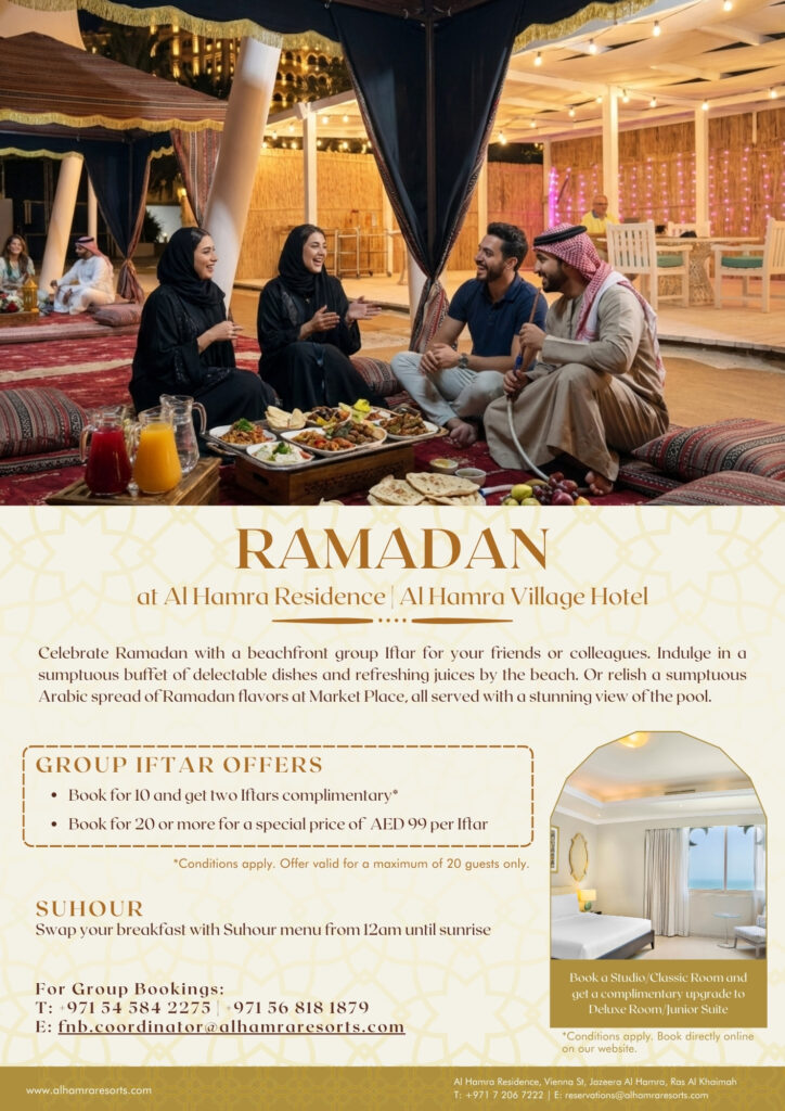 Good food. Ocean air. Thoughtful touches. And group deals that actually make sense. If your idea of Ramadan includes meaningful gatherings without the chaos, Al Hamra’s got your back—beautifully.