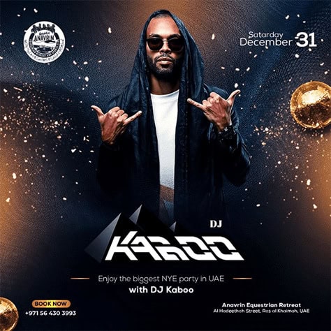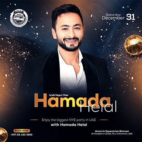 ANAVRIN Equestrian Retreat and Sports Cub is hosting the biggest New Year Eve party in Ras Al Khaimah. The event has something for everyone. With the biggest Arabic heartthrob Hamada Helal, party king DJ Kaboo, and special guests like Aydas and Neermin, the event promises to be the hottest party in town.