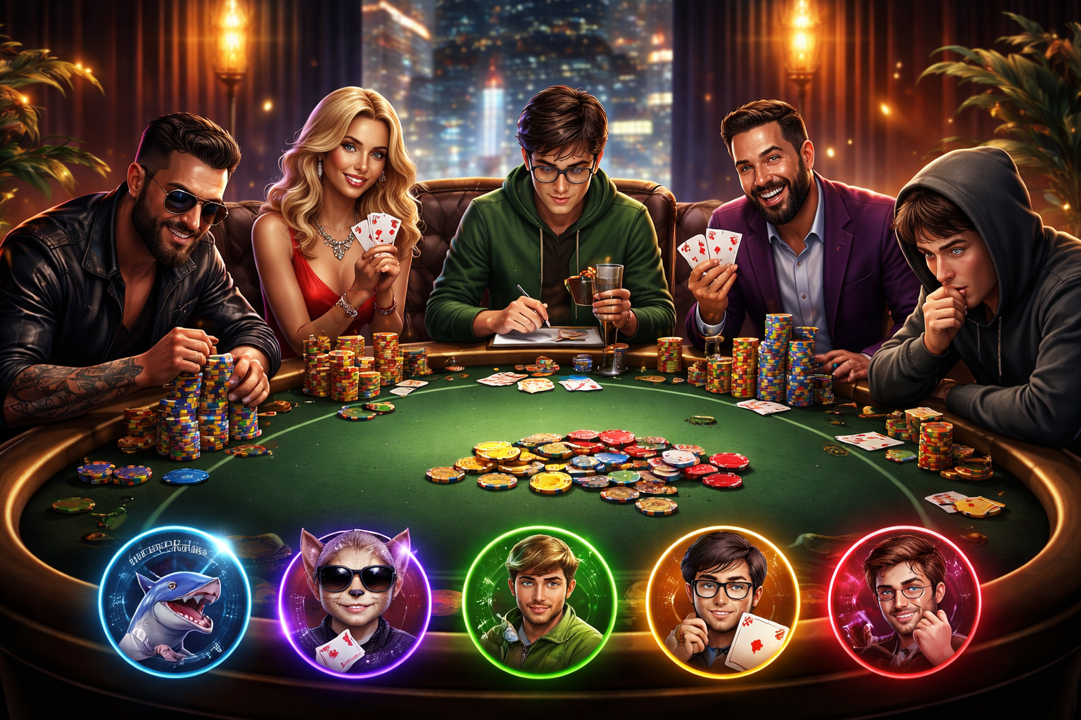 Verschillende spelersstijlen aan een online pokertafel