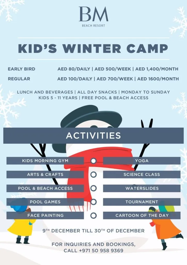 Planning is key, so mark your calendars for the Kid’s Winter Camp at BM Beach Resort. Here’s a breakdown of the essential details: