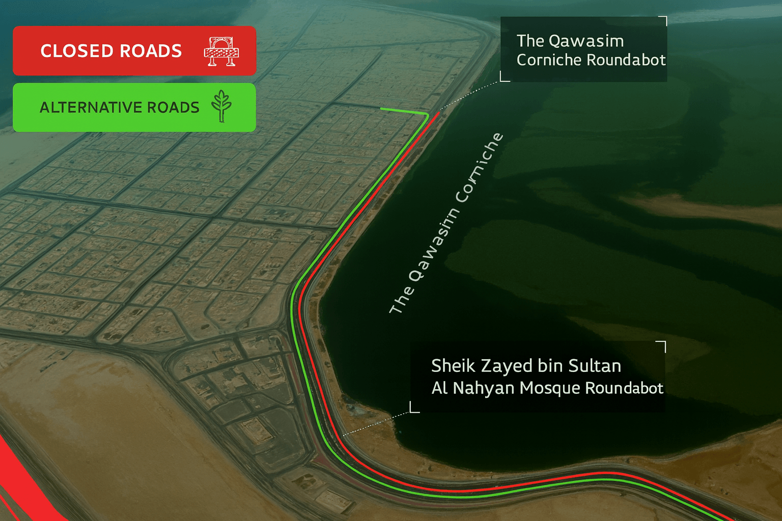 “The rehearsal will witness the movement of military units and the closure of the main road leading to the Qawasim Corniche. Ras Al Khaimah Police call on the public to take alternative routes.”